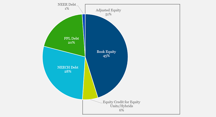 On an adjusted basis, NextEra Energy’s capital structure is comprised of 51% equity.